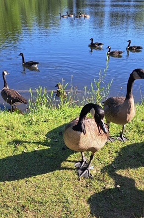 But let me tell you, there’s another species that’s all too abundant in these parts: geese. Not the gentle, storybook kind that flap off into the sunset. No, these are the hooligans of the bird world, a full-fledged gang, strutting around like they own the joint. They honk like a brass band warming up, block the trails like feathery little mafiosos, and God help you if you get too close. My lil dog, being the curious soul he is, wandered just a tad too near, and suddenly we were in a standoff with a goose that looked like it had done time. Beady little eyes, murder in its heart. That bird was out for blood. So we did what any self-respecting duo would do—we turned tail and found another way. No shame in that. You gotta pick your battles.