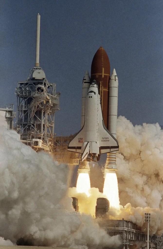 Then space happened. Proper, chest-thumping space. America built space shuttles that came back. Columbia. Atlantis. Discovery. We cried for Challenger and her crew—everybody did—But then Endeavour soared into the skies with defiance and optimism. Proper machinery. Proper bravery.