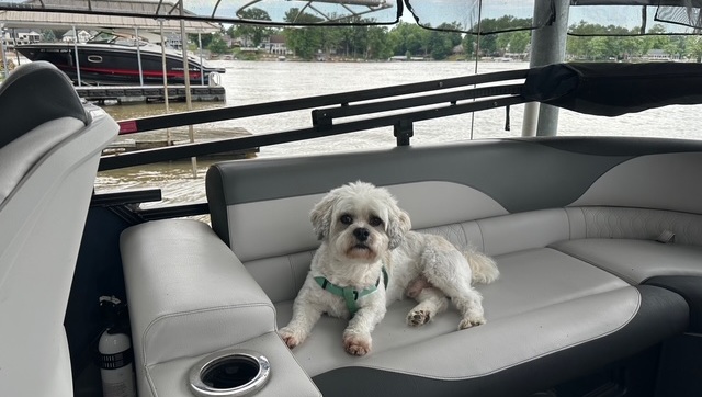 Anyway, we launched the boat. Sailed across a picturesque lake filled with happy Americans doing happy American things. There were boats with garages. Artificial Lily pads for swimming the size of king mattresses. And yes, even the little dog stood up like Jack Sparrow facing the breeze, ears flapping like victory flags.